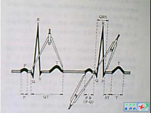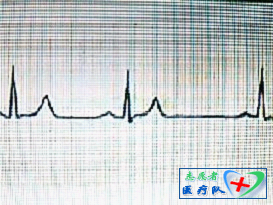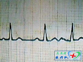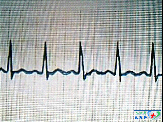 6、阵发性室上性心动过速---特点:与窦性心动过速有点相似,但是频律更快一些,在150-250次/分之间。在电视节目中反映抢救危重病人时常常用此图来衬托紧张的气氛。