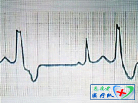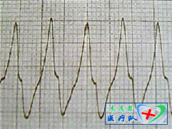 7、阵发性室性心动过速---特点:没有正常波形,可见宽大畸形的QRS波及深的T波,有点象拉开的弹簧一样一圈一圈的。