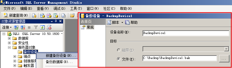 SQL Server 早期版本需要在配置备份设备之后才能备份数据库。对于 SQL Server 2008,不需要明确地定义备份设备。不过,备份设备提供了一种简单的方式,用来确保多次创建的备份具有相同的文件名和位置。通过使用一致的名称和保存位置,可以更加容易地管理备份和还原过程。