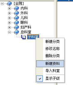 看到【子科室】添加成功,右击【子科室】新建资料,