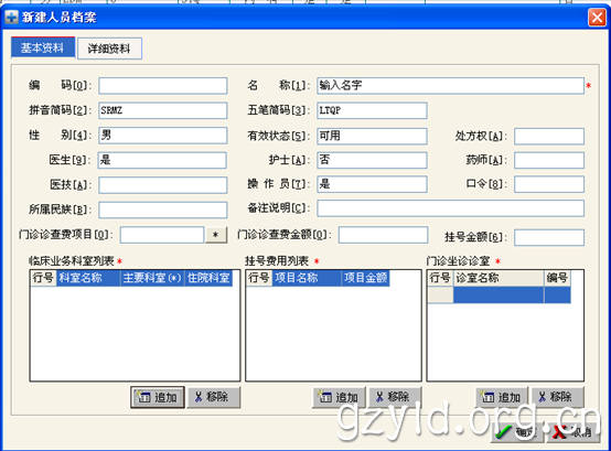 【资料】可以理解成装医生的容器,我们输入【装医生的容器】并添加,负责人和总院。