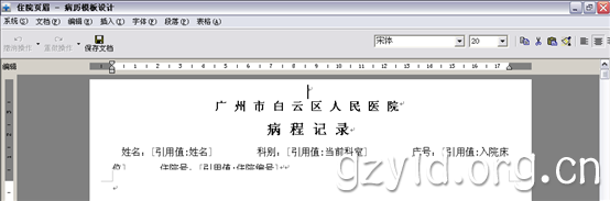 进入模版的编辑框,为了配合我院的病程记录纸的格式,以下是常规的设置。