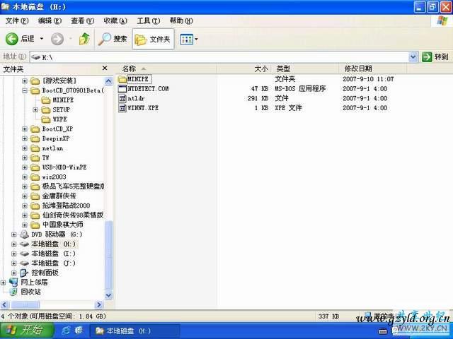4、点击打开WINPE解压缩以后文件夹,把WINNT.XPE复制到移动硬盘,打开WXPE文件夹,把NTDETECT.COM和SETUPLDR.BIN复制到硬盘硬盘,并把SETUPLDR.BIN文件改名为ntldr ,注意去掉扩展名。再把MINIPE文件夹复制到硬盘硬盘上如图。
