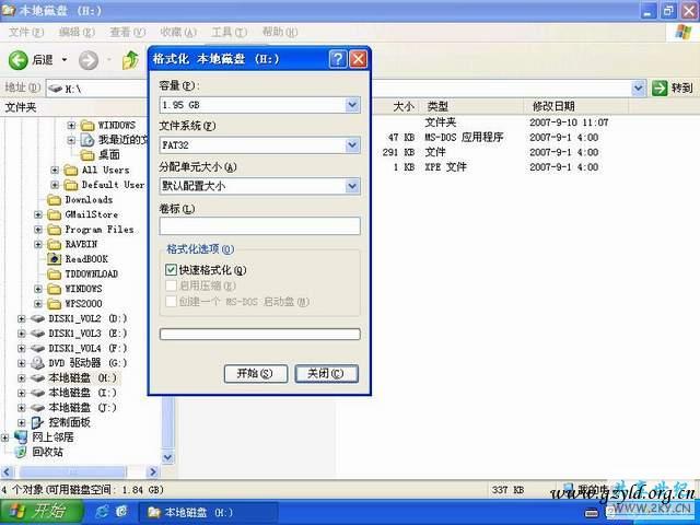 3、点击移动硬盘第一个盘符H,右击运行格式化如图,本机实验FAT32,NTFS格式均可。