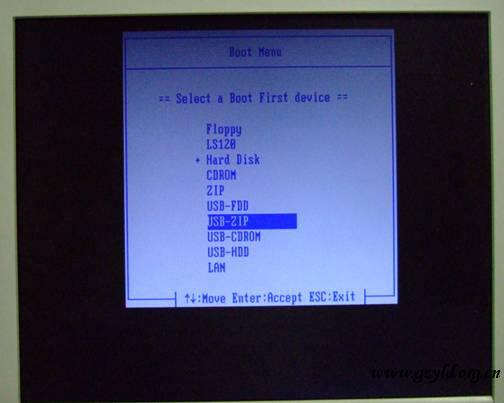 另外,技嘉945GC还支持F12启动菜单。在开机时按F12,出现启动菜单:
