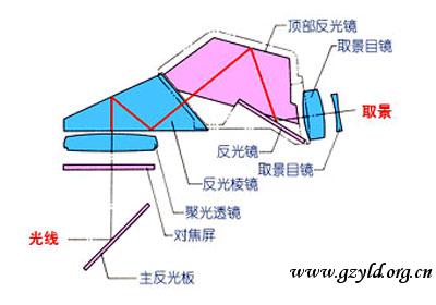 在这种系统中,反光镜和五棱镜的独到设计使得摄影者可以从取景器中直接观察到通过镜头的影像。单镜头反光相机取景构造图中可以看到,光线透过镜头到达反光镜后,折射到上面的对焦屏并结成影像,透过接目镜和五棱镜,我们可以在观景窗中看到外面的景物。